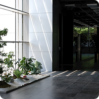 Open-Concept Living Room: 18-foot ceilings with panoramic windows, hardwood oak flooring, and a modern gas fireplace.